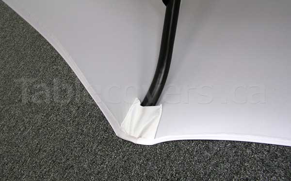 This 6 foot black or white basic spandex table cover features a 1 colour white heat transfer PU vinyl printed logo (maximum print area 36" wide x 15" high) for great branding at an affordable price. Featuring high density 220 gsm premium weight spandex / polyester fabric with NFPA 701 flame retardant coating, they're in stock and ready to be imprinted with your logo quickly and economically. Even though we call them "basic" spandex table covers - they're not cheap or poor quality products. Our basic spandex table covers have many features found in some suppliers "premium" spandex table covers.