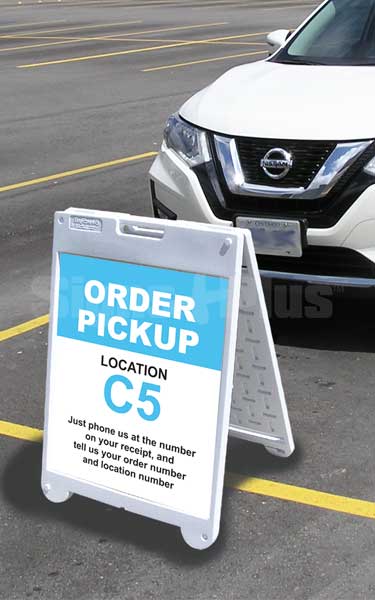 The Simpo-Sign II is a simple, economical aframe sidewalk sign made of molded plastic that won't rust or rot like steel or wood sandwich boards. Its molded plastic construction is lightweight, but it's strong enough to handle indoor or many outdoor conditions. This sandwich board displays two 22" wide x 28" high rigid sign panels printed on your choice of waterproof, fade-resistant corrugated plastic (outdoor) or matte foamboard (indoor), which easily slip into place and can be changed in seconds.