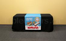 Debbie, about 6 foot basic drape table throw (black, royal blue or red fabric) with white heat transfer logo Verified Purchase
